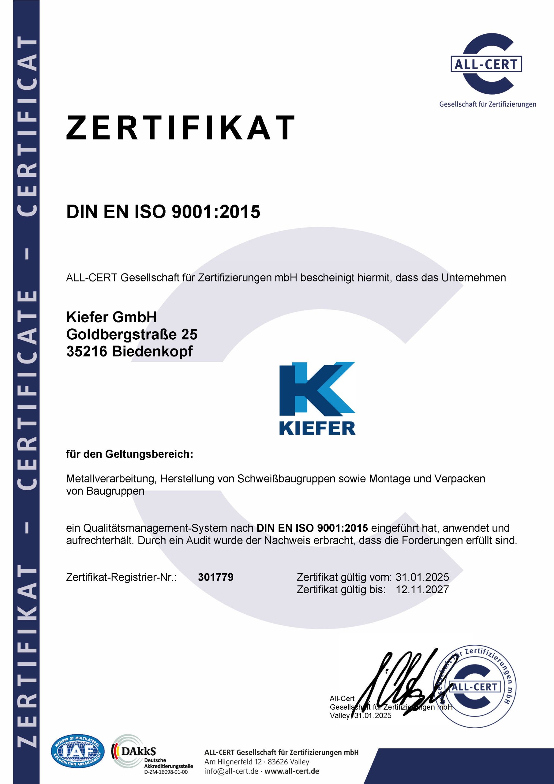 DIN EN ISO 9001 sind Ausdruck unseres Qualitätsverständnisses.